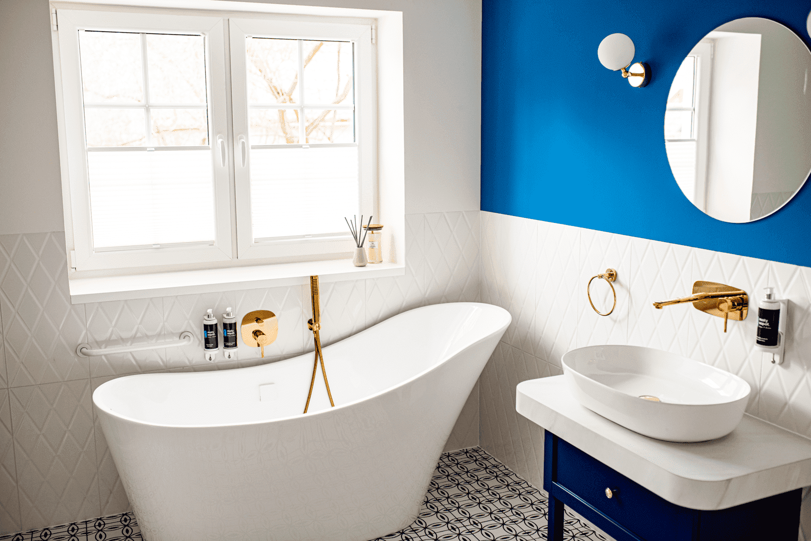 - Łazienki z wolnostojącymi wannami, elektronicznymi bidetami i oknami